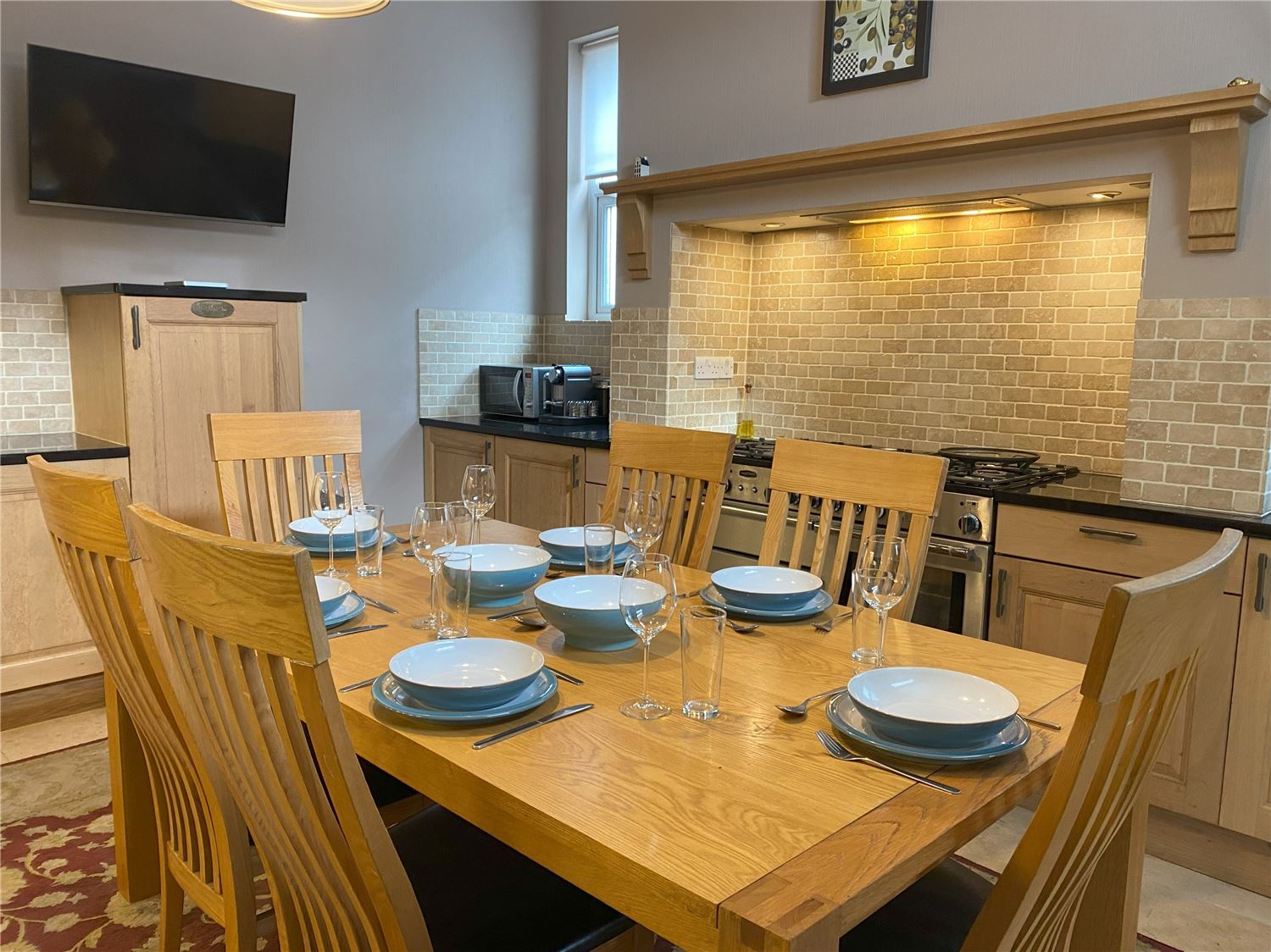 The family sized kitchen is fully equipped with a double oven and six ring gas hob, microwave, Nespresso coffee machine, kettle, toaster, dishwasher and washing machine. Tea, coffee, sugar and condiments are provided for your convenience.